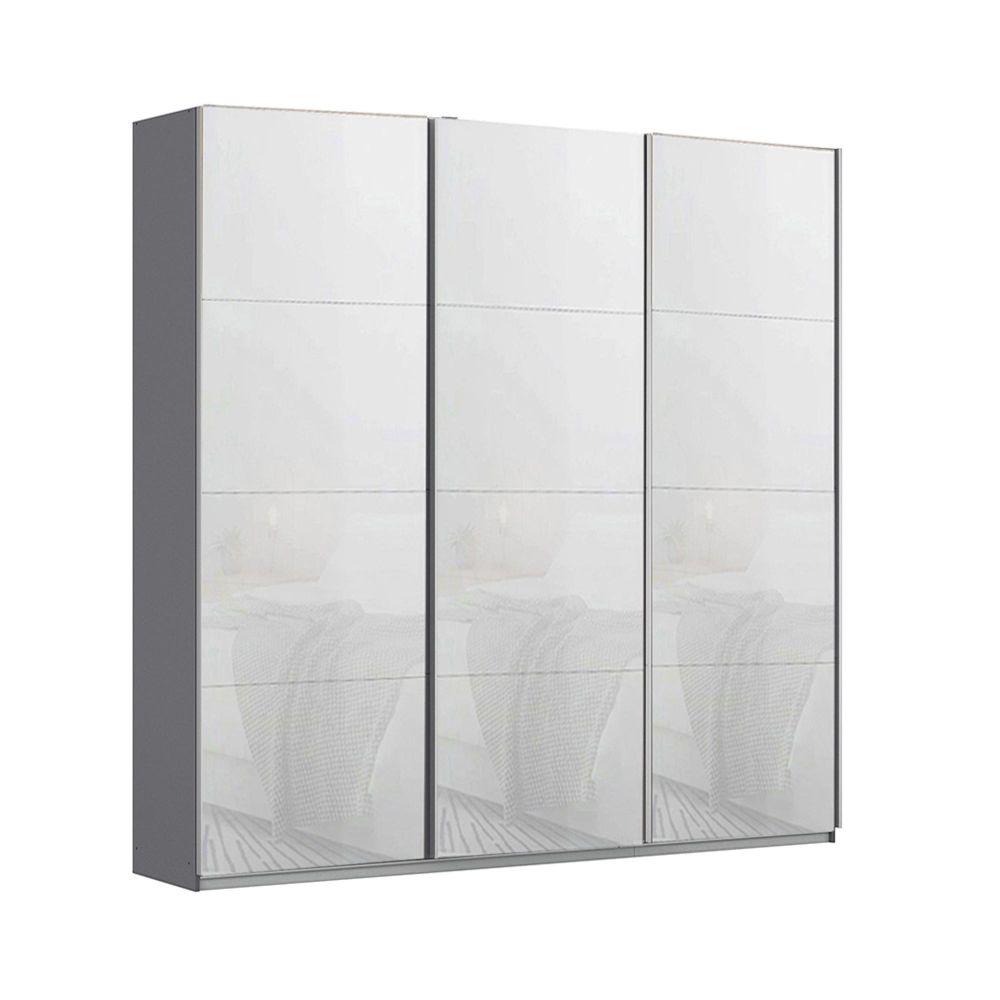 Kulmbach Sliding Wardrobe - 203cm - 3 Door - Metallic Dark Grey & White Glass