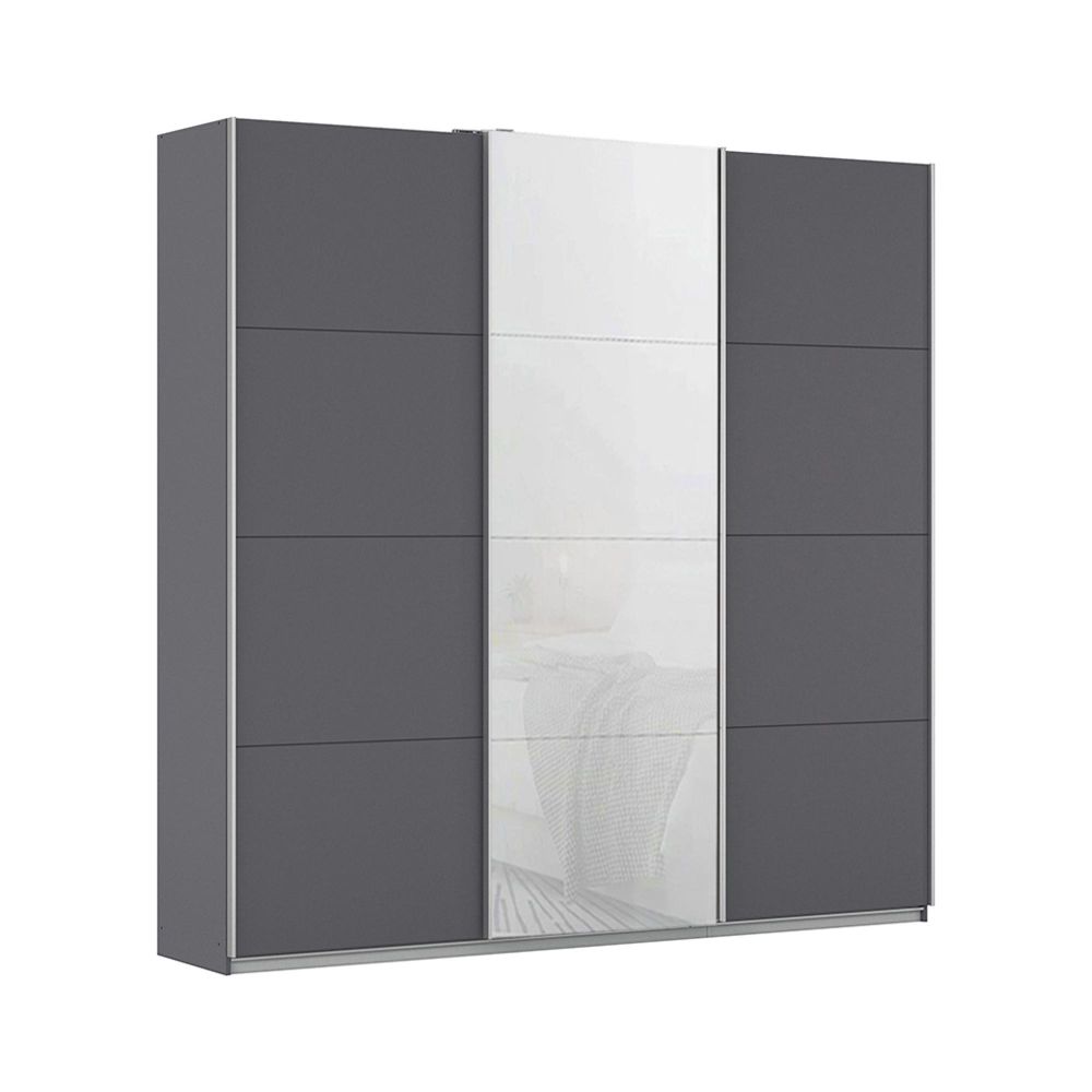 Kulmbach Sliding Wardrobe - 203cm - 3 Door - Metallic Dark Grey & White Glass Front