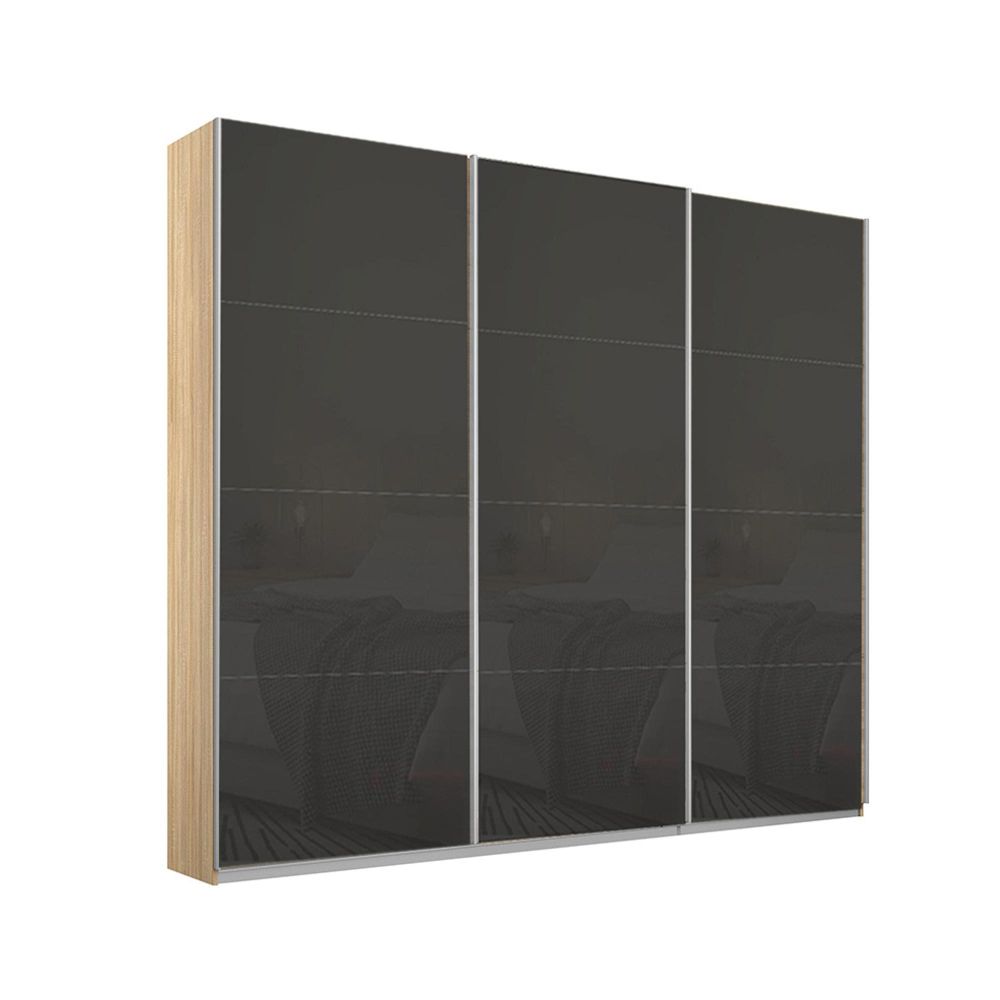 Kulmbach Sliding Wardrobe - 203cm - 3 Door - Sonoma Oak & Basalt Glass