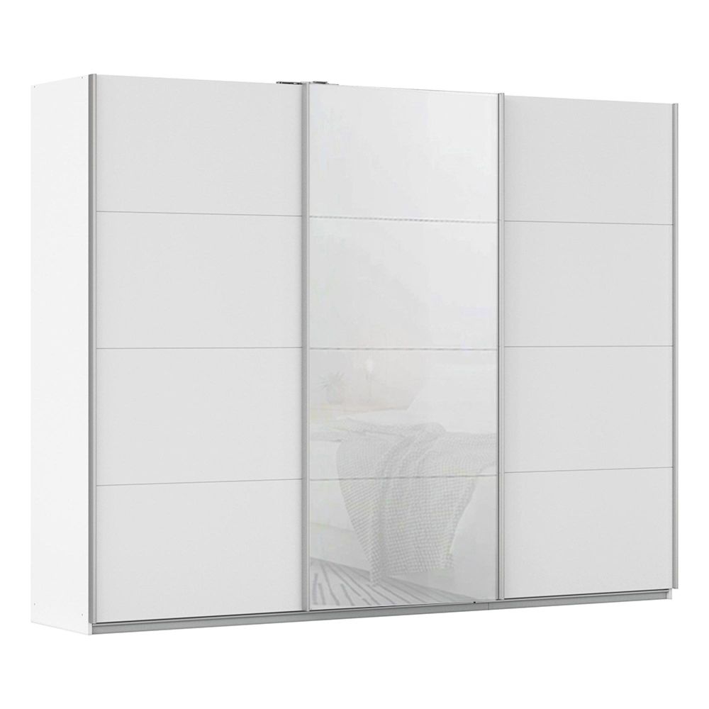 Kulmbach Sliding Wardrobe - 271cm - 3 Door - Alpine White & White Glass Front