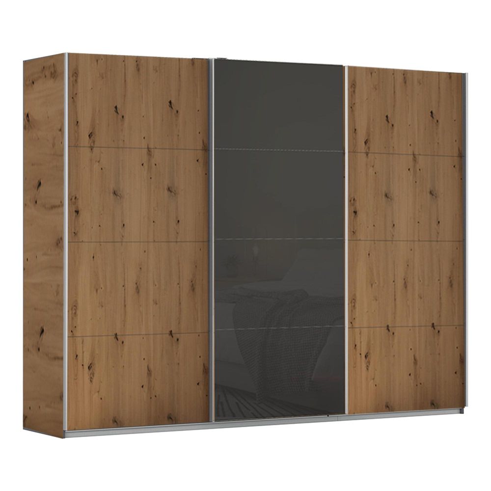 Kulmbach Sliding Wardrobe - 271cm - 3 Door - Artisan Oak & Basalt Glass Front