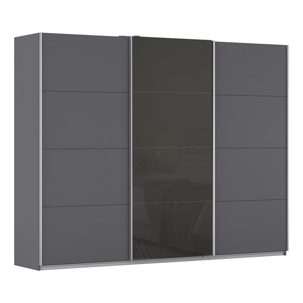 Kulmbach Sliding Wardrobe - 271cm - 3 Door - Metallic Dark Grey & Basalt Glass Front