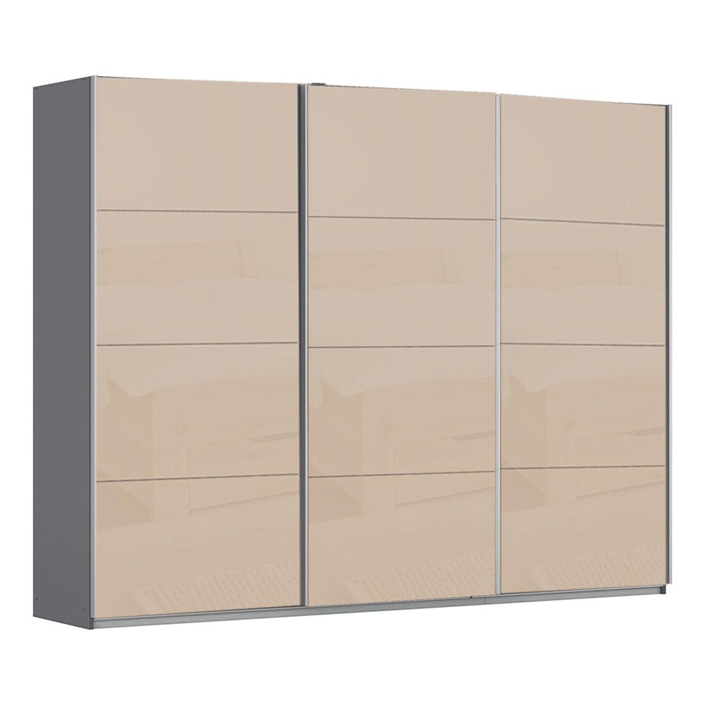 Kulmbach Sliding Wardrobe - 271cm - 3 Door - Metallic Dark Grey & Champagne Glass