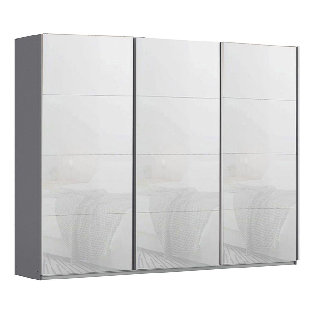 Kulmbach Sliding Wardrobe - 271cm - 3 Door - Metallic Dark Grey & White Glass