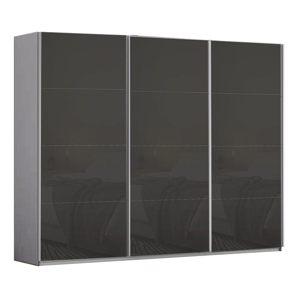 Kulmbach Sliding Wardrobe - 271cm - 3 Door - Silk Grey & Basalt Glass
