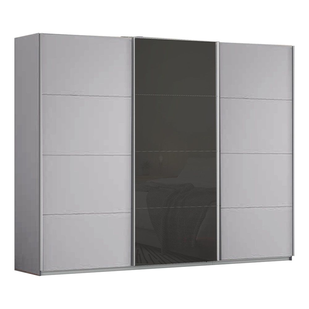 Kulmbach Sliding Wardrobe - 271cm - 3 Door - Silk Grey & Basalt Glass Front