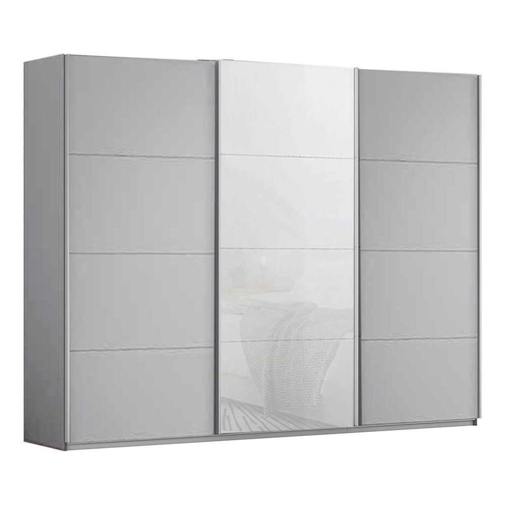 Kulmbach Sliding Wardrobe - 271cm - 3 Door - Silk Grey & White Glass Front