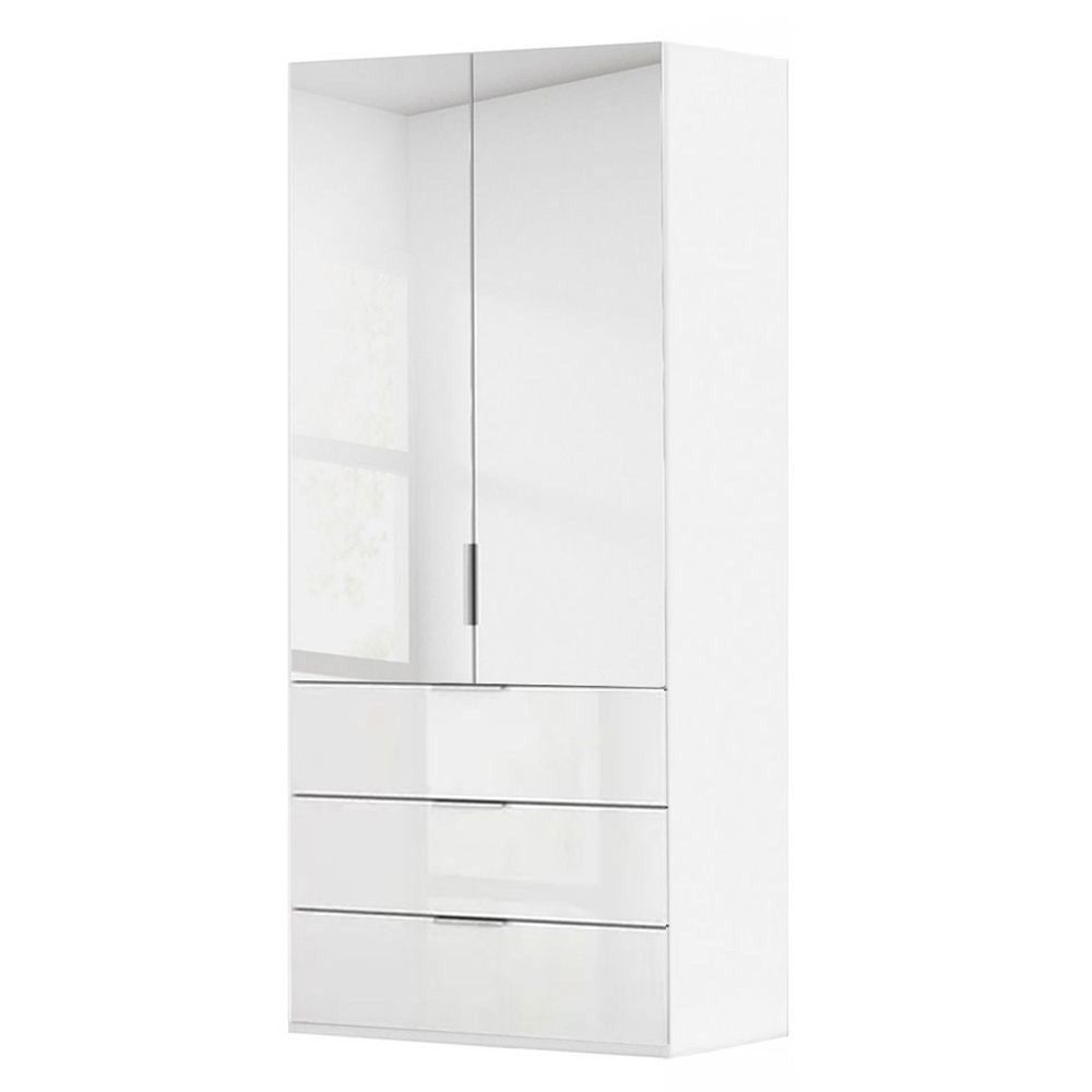 Miramar Type-5 Wardrobe - 101cm - 2 Door - Combi - Alpine White & Crystal White Glass