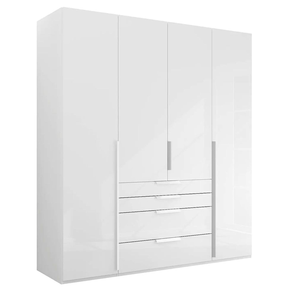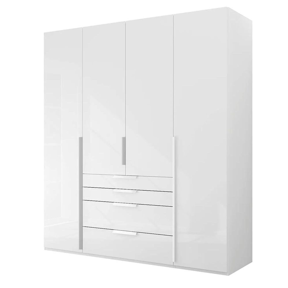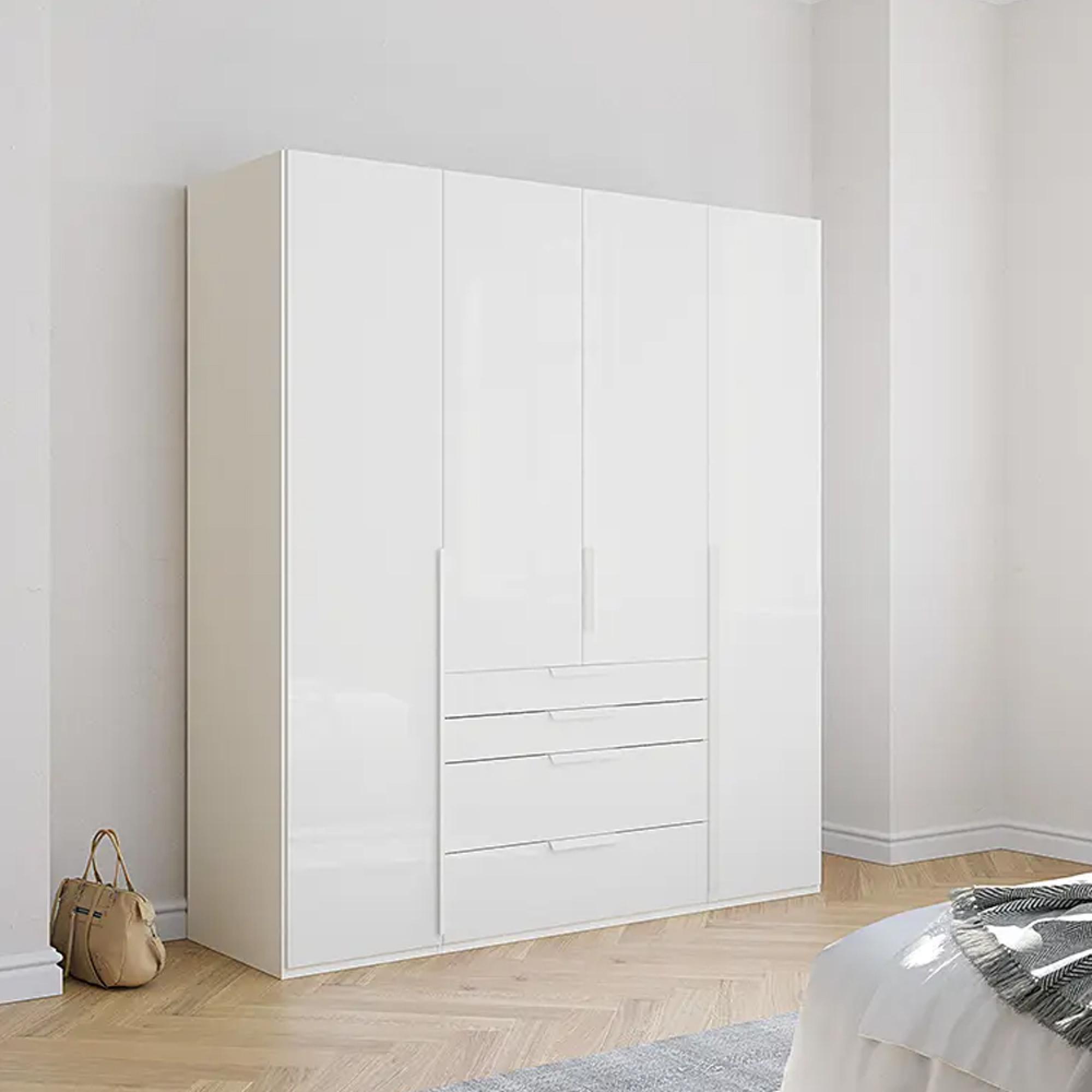 Purisma Wardrobe - 201cm - 4 Door - 4 Drawer - Alpine White & Crystal White Glass