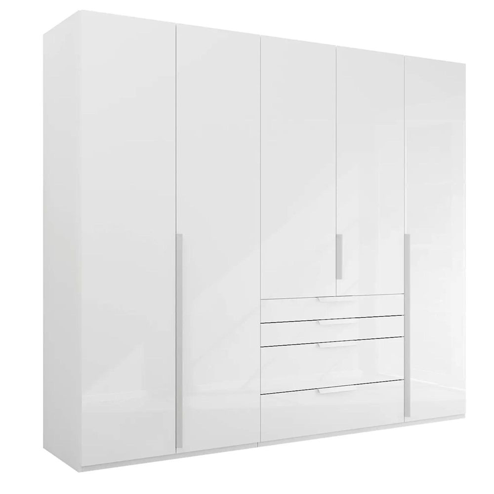 Purisma Wardrobe - 251cm - 5 Door - 4 Drawer - Alpine White & Crystal White Glass