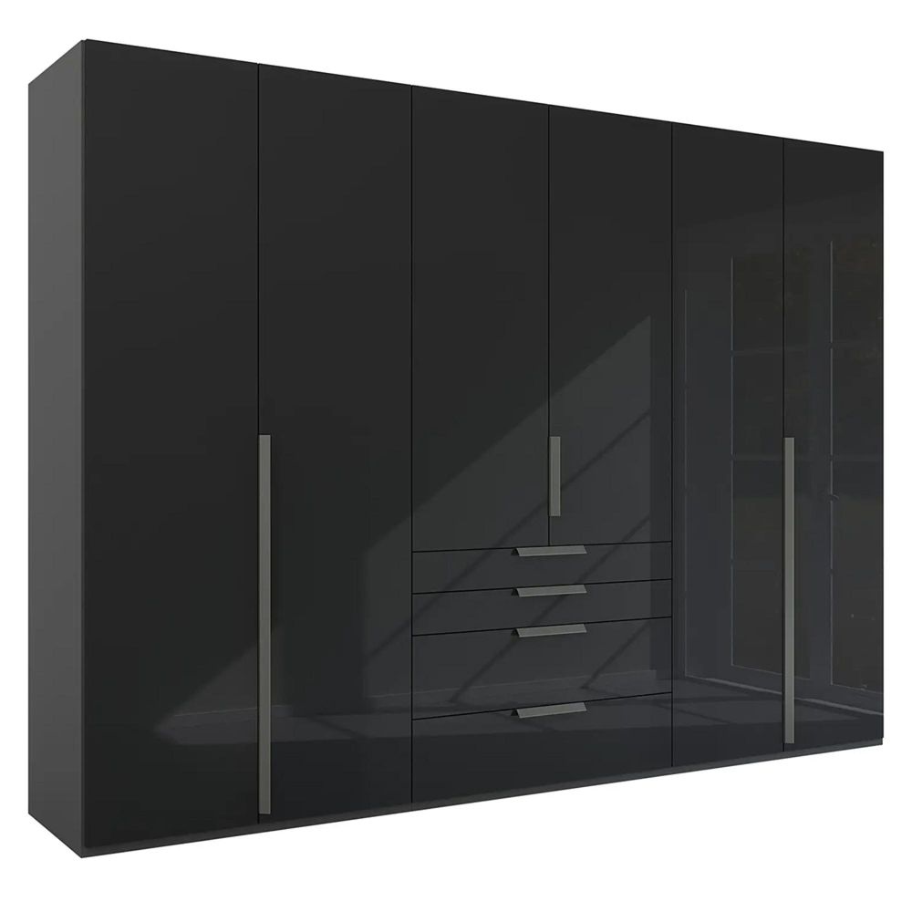 Purisma Wardrobe - 301cm - 6 Door - 4 Drawer - Graphite & Basalt Glass