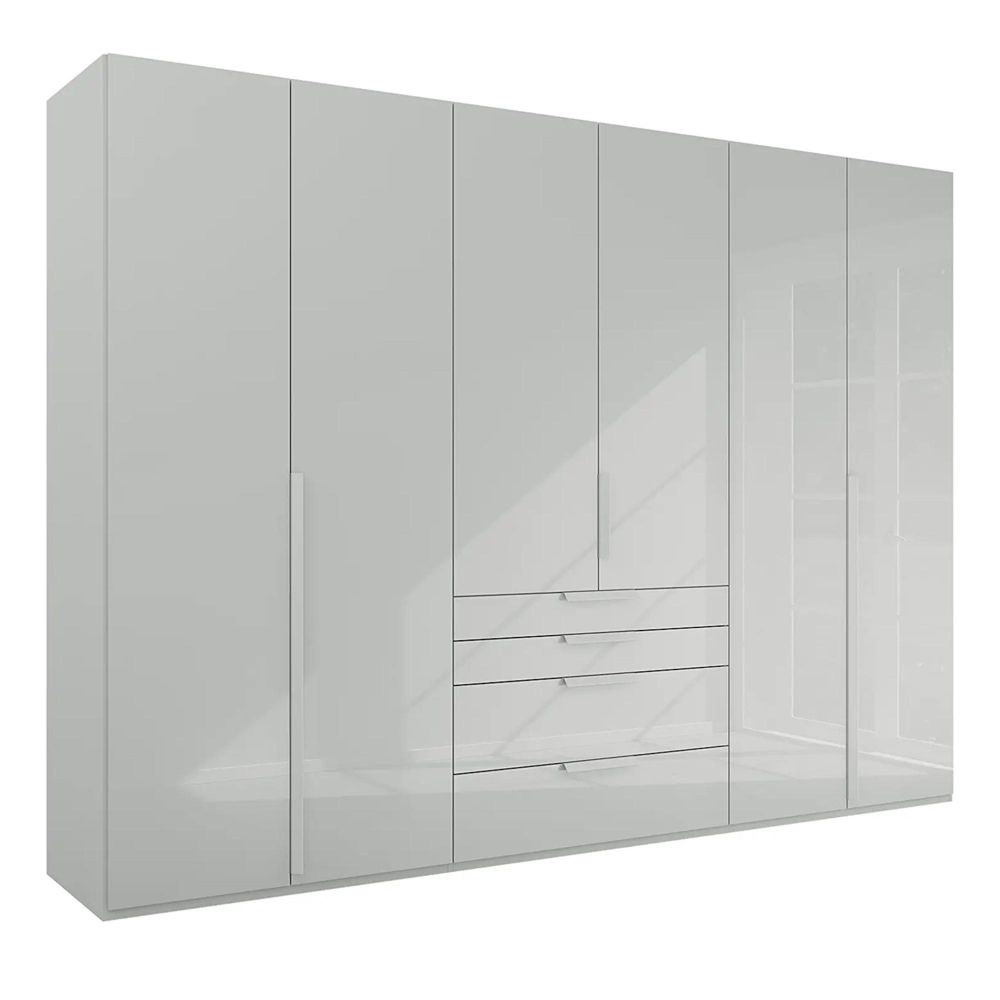 Purisma Wardrobe - 301cm - 6 Door - 4 Drawer - Silk Grey Glass