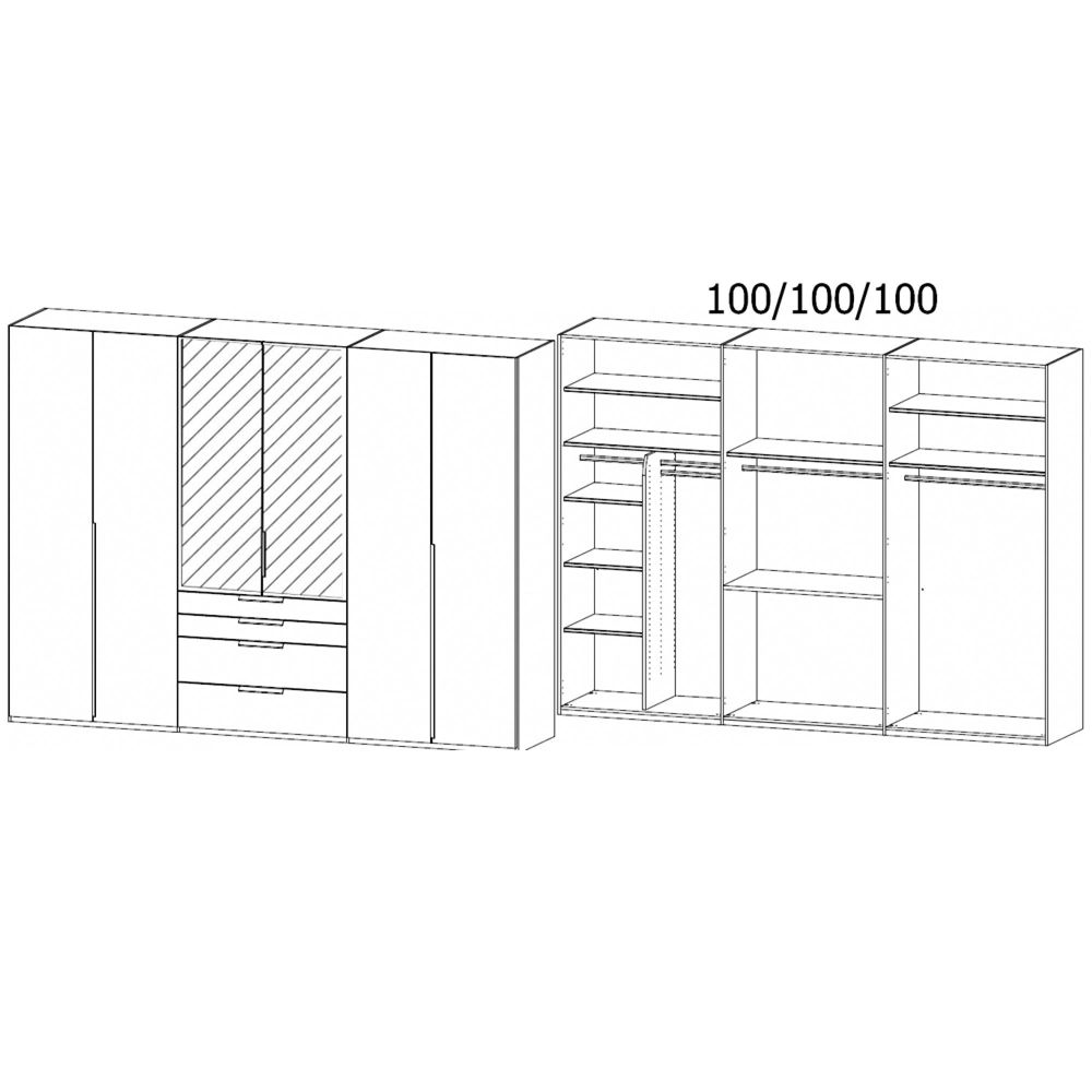 Purisma Wardrobe - 301cm - 6 Door - Combi - Graphite
