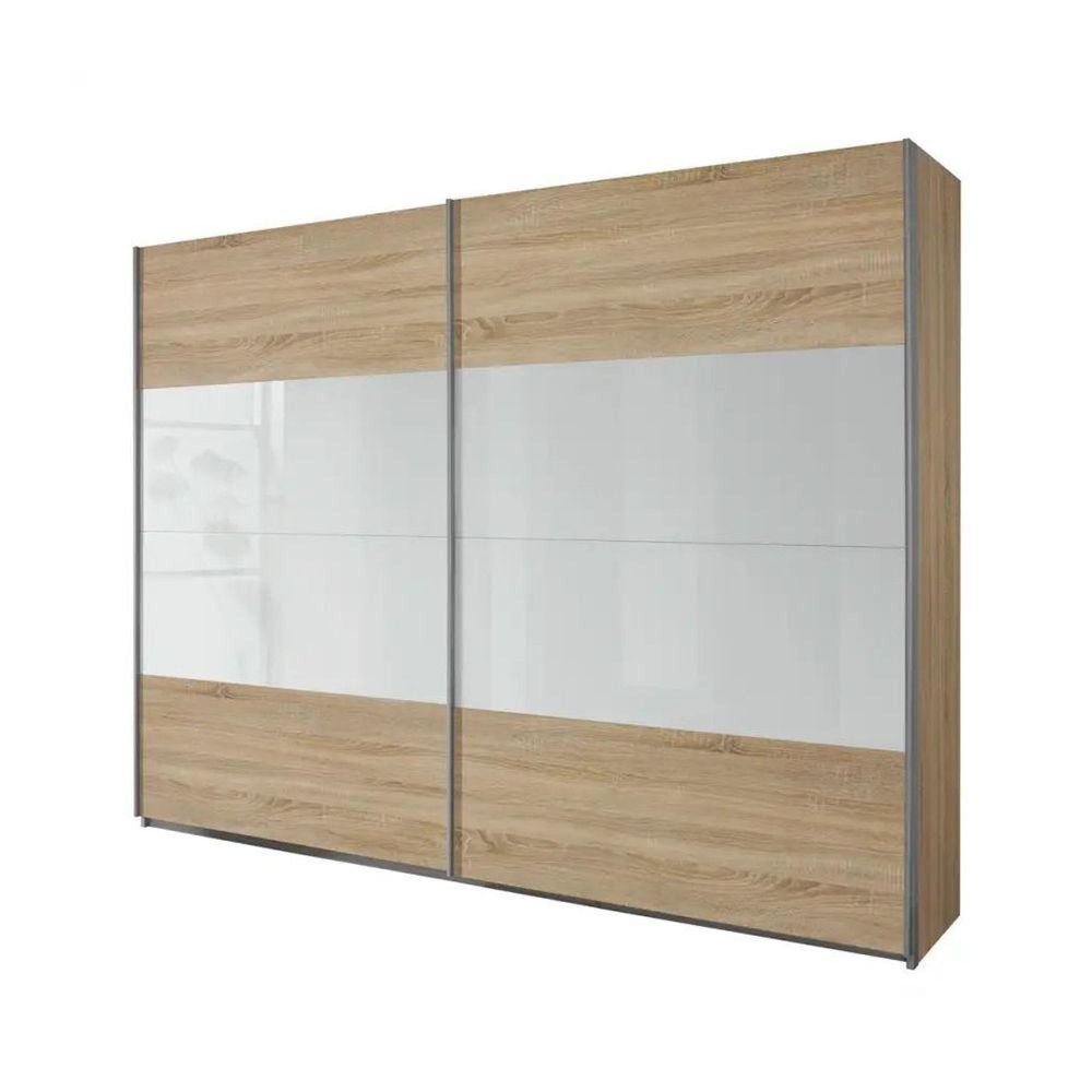 Quadra Sliding Wardrobe - 181cm - 2 Door - Sonoma Oak & White Glass
