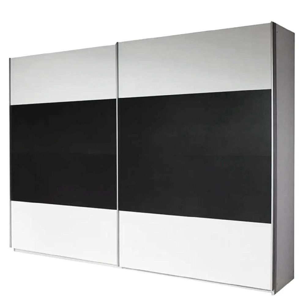Quadra Sliding Wardrobe - 271cm - 2 Door - Alpine White & Metallic Dark Grey