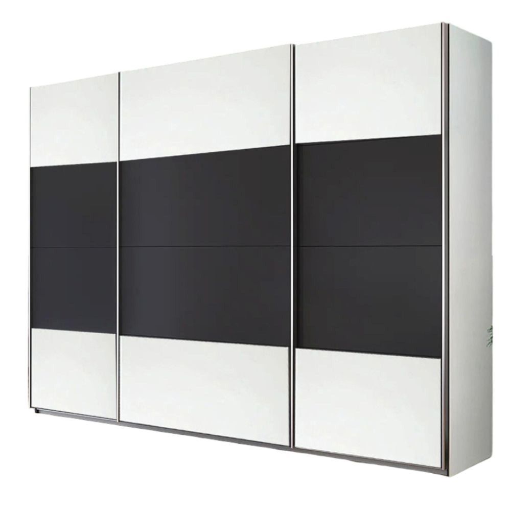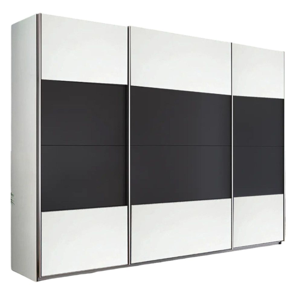 Quadra Sliding Wardrobe - 315cm - 3 Door - Alpine White & Metallic Dark Grey