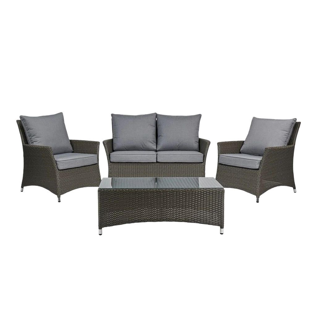 Relax in this stylish Paris Deluxe lounge suite complete with 2 seater sofa, 2 lounging armchairs and glass top coffee table. This set is perfect for indoors and out, boasting polyethylene double round wicker around a rigid aluminium frame and tempered glass table top along with weather shield back and seat cushions. This set is durable and weather resistant for use all year round. The Paris range is made from the highest quality polyethylene double round wicker around a rigid aluminium frame ensuring its strong, durable and beautifully designed.