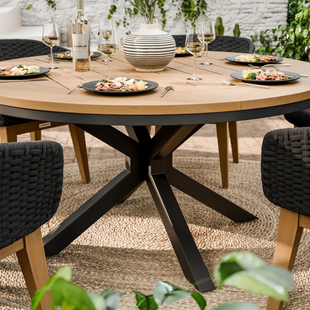 The Set Includes:- 1 x Tuscany 150cm Round Table (with Teak wood top).