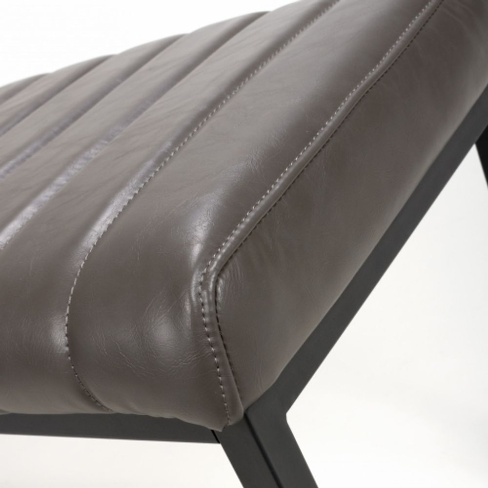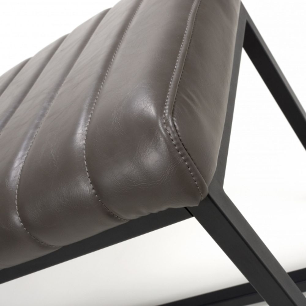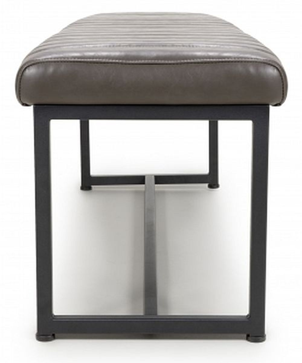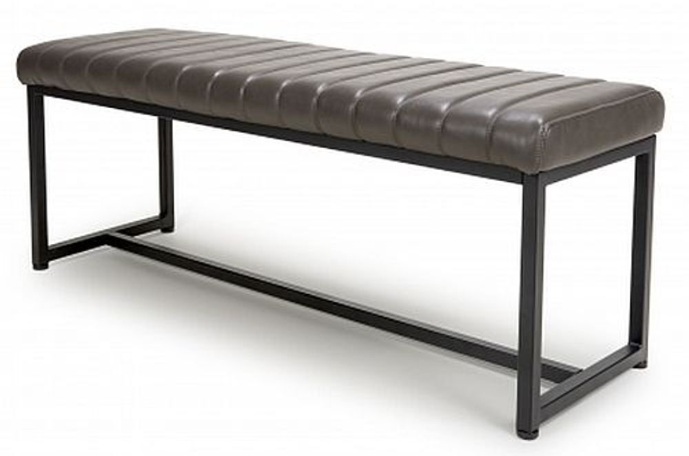 Item Code: 110-14-54-29-01 A modern industrial bench with ribbed vertical stitching, upholstered in durable brownish grey leather effect. The black metal square leg frames are stylishly joined by a stabilising bar. Assembly required. Sold individually.