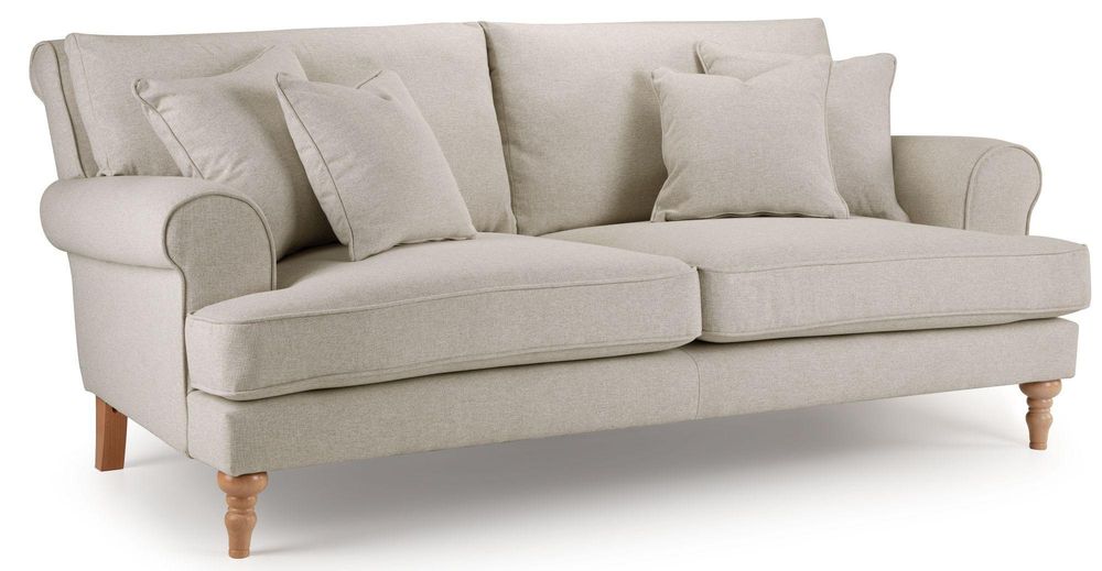 Item Code: W32-03-012-033 The Model 32 sofa range is a modern twist on a historical classic. Design features such as a deep scroll back, elegantly tapered arm and turned wooden legs emphasise the classical whilst the slub weave fabric in a range of iconic fashion colours, make this a wonderful statement piece. Each sofa includes four scatter cushions per sofa, a deeper low slung seat for comfortable lounging.