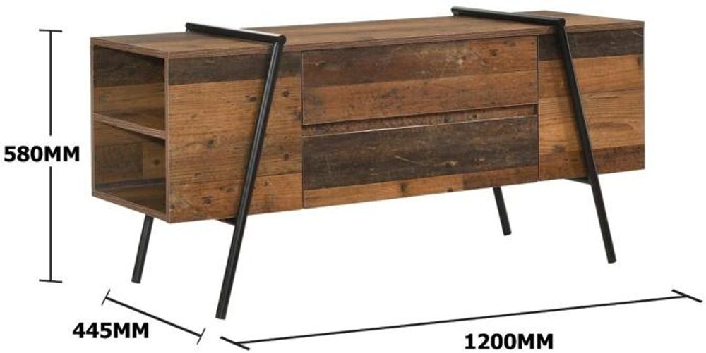 Unique, and full of character, the Alpena series takes you back in time whilst complimenting the modern home. Tubular iron frames laid with rustic wooden panels, make each item in this series individual in appearance, incorporating practical storage solutions for the home.• Unique Rustic Design.• Complete with 2 Drawers & 4 Open Shelfs.• Metal Hinges, Runners, Outer Frame and Legs.