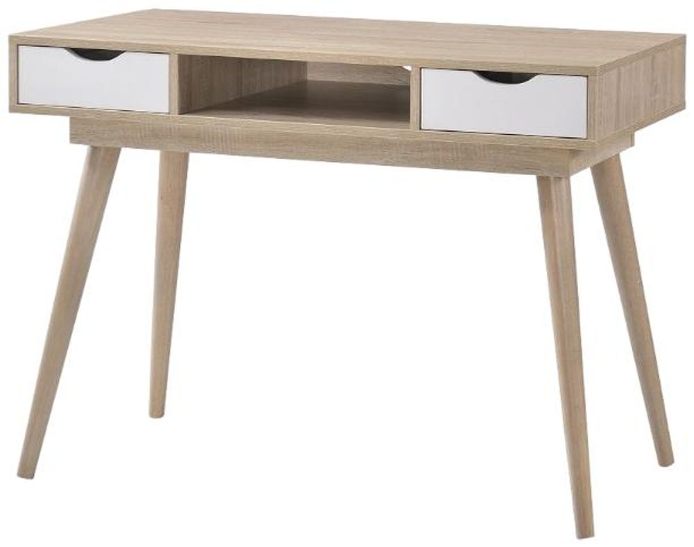 Our stylish Scandi-styled range has been designed for the modern home, adding an organised and clean feel for the living space.• Scandinavian Design Desk.• Complete with 2 Drawers and Open Storage Space.• White Front Drawers with Cut Out Handles.