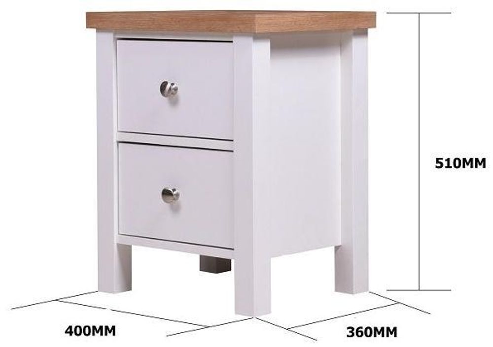 Bring elegance to your home, with a sense of British style and design with this bright collection. The Arthur series lends itself to solid wood looks with self-assembly simplicity.• White Frames with Contrasting Oak Top.• Complete with 2 Handy Drawers.• Round Metal Knobs and Metal Drawer Runners.