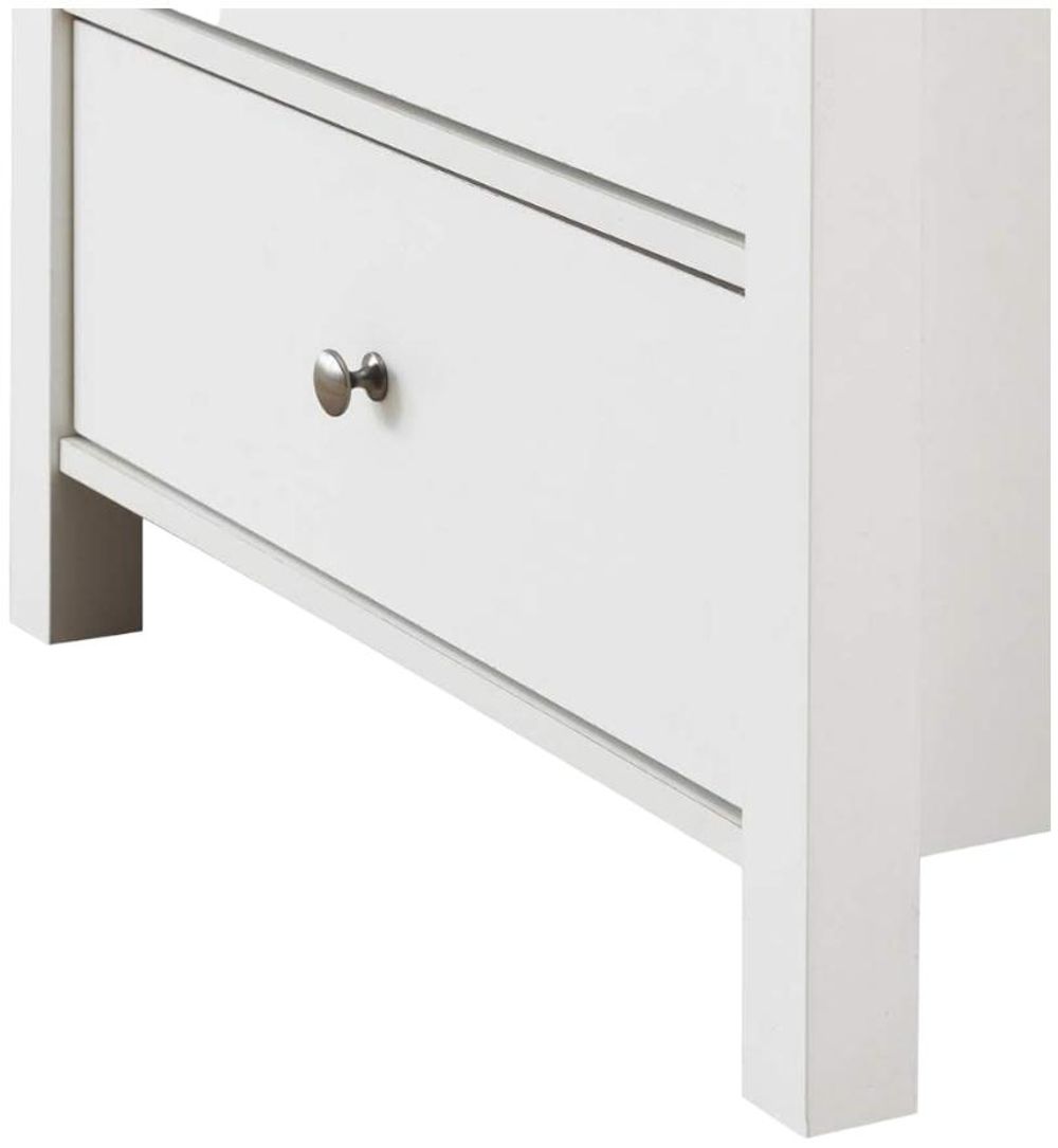 Bring elegance to your home, with a sense of British style and design with this bright collection. The Arthur series lends itself to solid wood looks with self-assembly simplicity.• White Frames with Contrasting Oak Top.• Spacious 3 Drawers.• Round Metal Knobs and Metal Drawer Runners.