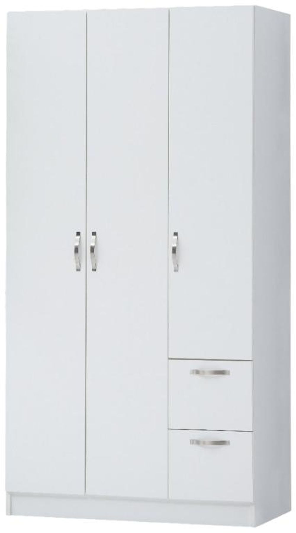 Full of presence, The Edwards collection will enhance any room, bringing a stylish look to your home. The will collection makes for fantastic stand-alone pieces or are ideal for creating a beautifully themed look within your home.The Edwards 3 door and 2 drawer wardrobe features a White finish with wooden handles. Inside, you will find generous storage with 3 separate compartments. The wardrobe comes with an anti-tipping kit.• Hanging rails with wooden handles• Anti-Tipping Kit• Measures H180cm x W90cm x D45• Other matching items available• White Finish• Manufactured using particle board• Each item comes flat packed for self-assembly at homePart of the Edwards Range.Please note that due to lighting and different devices you might be using, the colour in the image may vary slightly for the actual colour of the product