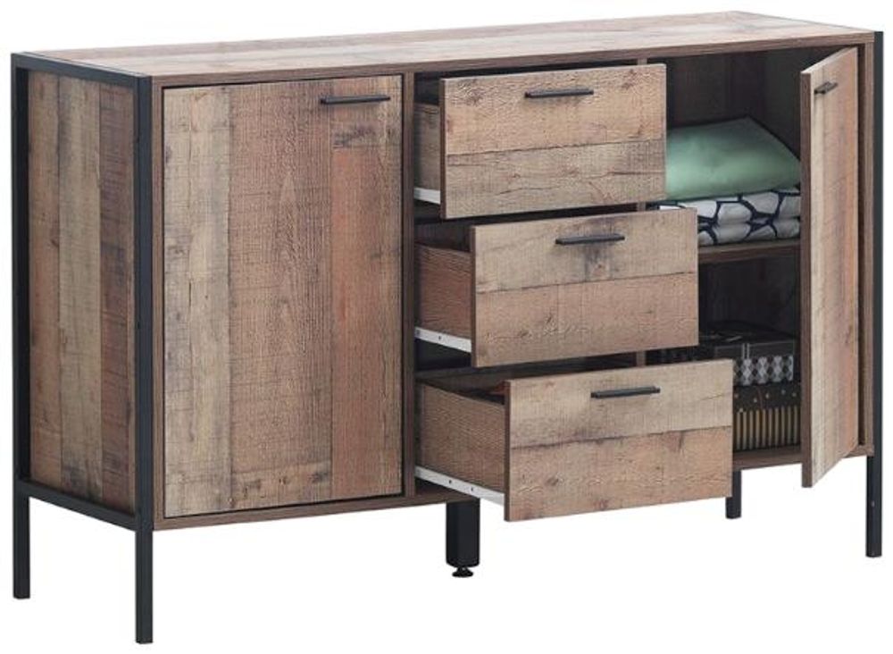 Industrial Rustic Oak Effect 2 Door 3 Drawer Sideboard