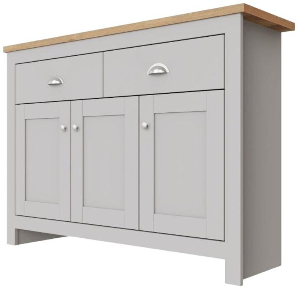 Full of presence, the Lyman range in Cream and cascading Oak tops fills any room with warmth and comfort. A stylish sideboard with two spacious drawers and three cabinets.• Cream Frames with Contrasting Oak Top.• 2 Drawers and 3 Cupboards.• Metal Runners and Beautiful Round Handles.