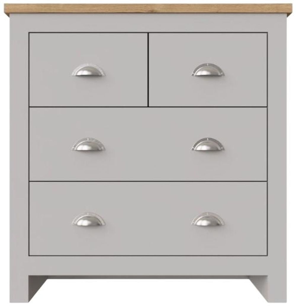 Full of presence, the Lyman range in Cream and cascading Oak tops fills any room with warmth and comfort. A beautiful stylish chest with 4 drawers, in Cream with brushed steel handles which will bring a touch of class to any room. • Cream Frames with Contrasting Oak Effect Top.• 2 Generous Drawers and 2 Smaller Ones.• Elegant Steel Handles and Metal Drawer Runners.