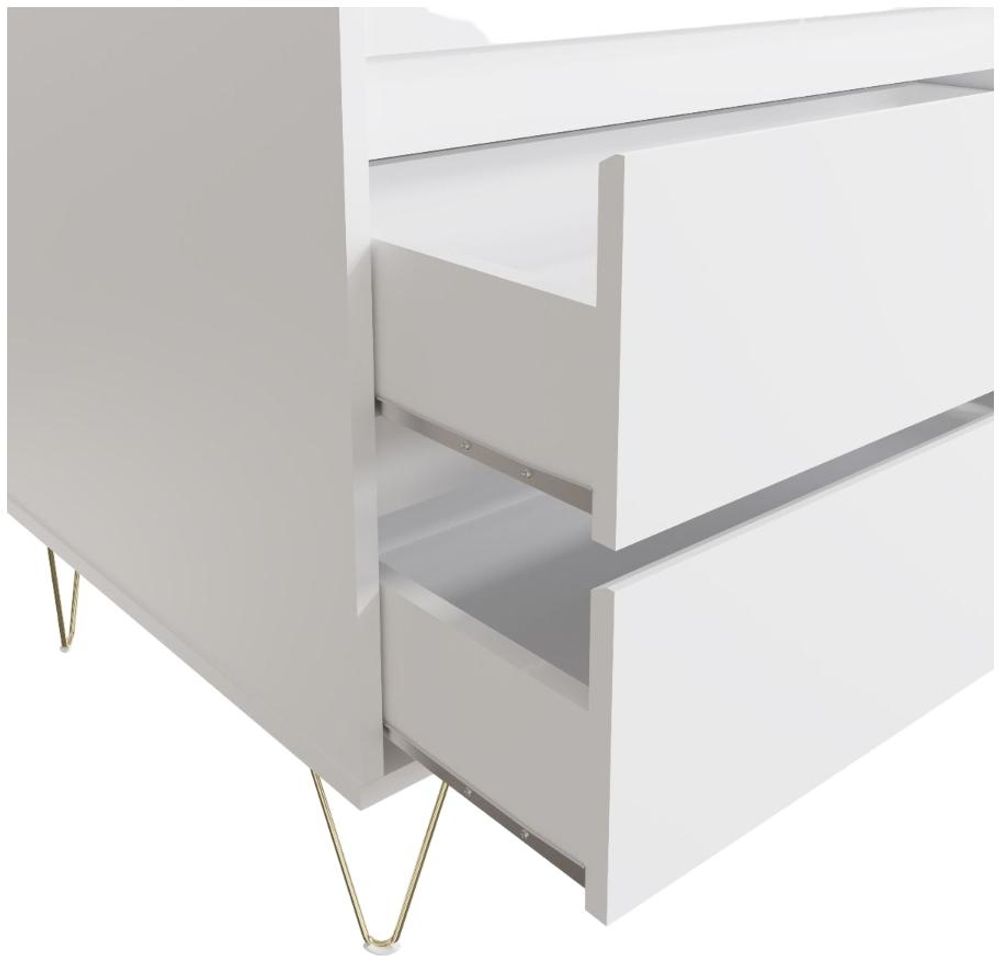 The Montour Range, both simple and stylish, fits perfectly into any room. A White finish with modern Gold legs, this collection offers a contemporary addition to your home.The Montour 2 door 2 drawer wardrobe is simple yet elegantly designed, the modern styling of this wardrobe will enhance any bedroom. Ideal for the main bedroom, guest room or as an extra wardrobe in a master bedroom it has full hanging space. This item is sure to satisfy any type of room.• Modern White Design• 2 Door 2 Drawer• Measures H198cm x W80cm x D57cm• Other matching items availablePart of the Montour Range.Manufactured using particle board, each item comes flat packed for self-assembly at home.Please note that due to lighting and different devices you might be using, the colour in the image may vary slightly for the actual colour of the product.
