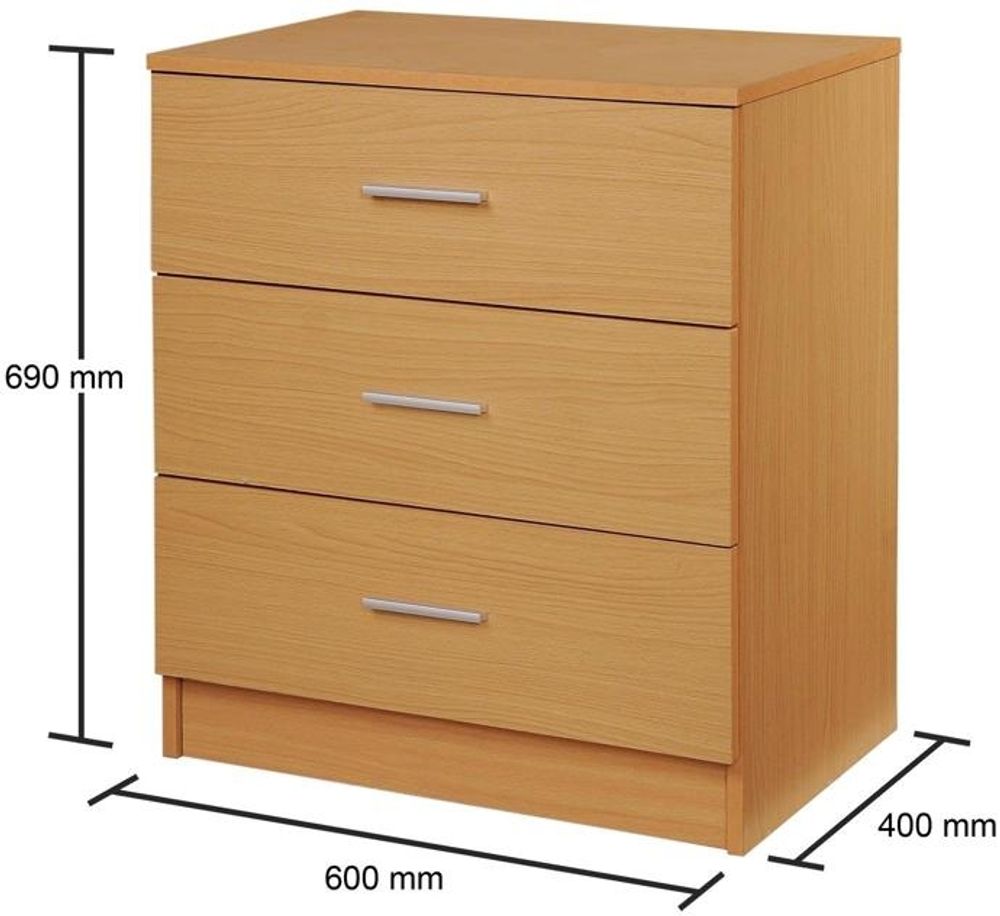 Proven to be popular in the contract furniture market, this simple tRico set is priced to attract. Now in White, Sonoma Oak, Dark Grey and Beech colours.• Traditional Design 3 Drawer Chest.• Complete with 3 Drawers.• Chrome Metal Handles and Metal Drawer Runners.