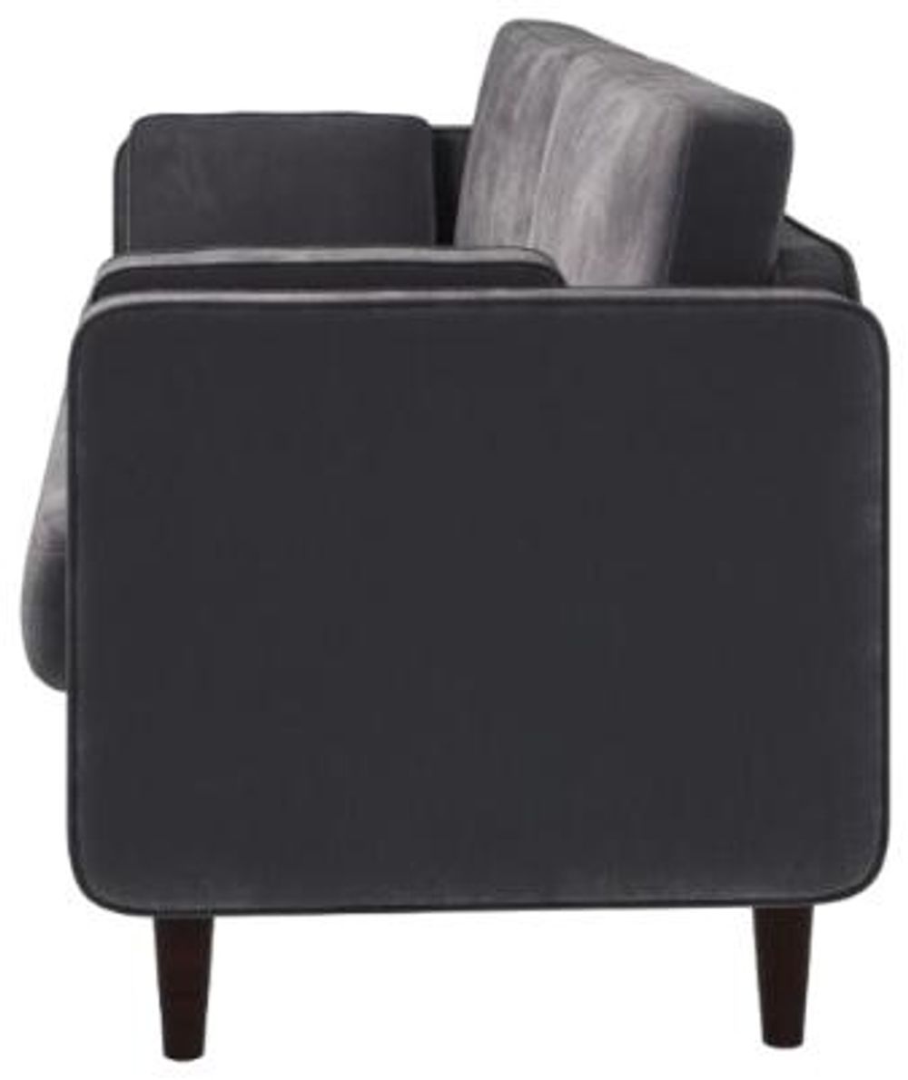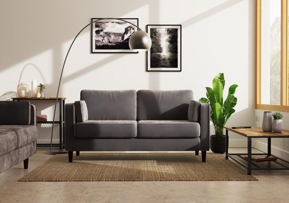 An elegant sofa, designed with velvet style material, extremely soft to touch while also being hardwearing. It is spectacularly comfortable, neatly designed, very adaptable, fabulous for small spaces and a joy to have in any home. A sofa made for living. This beautiful 2-seater is also available in a larger 3-seater, making the perfect set for any home. Grey.