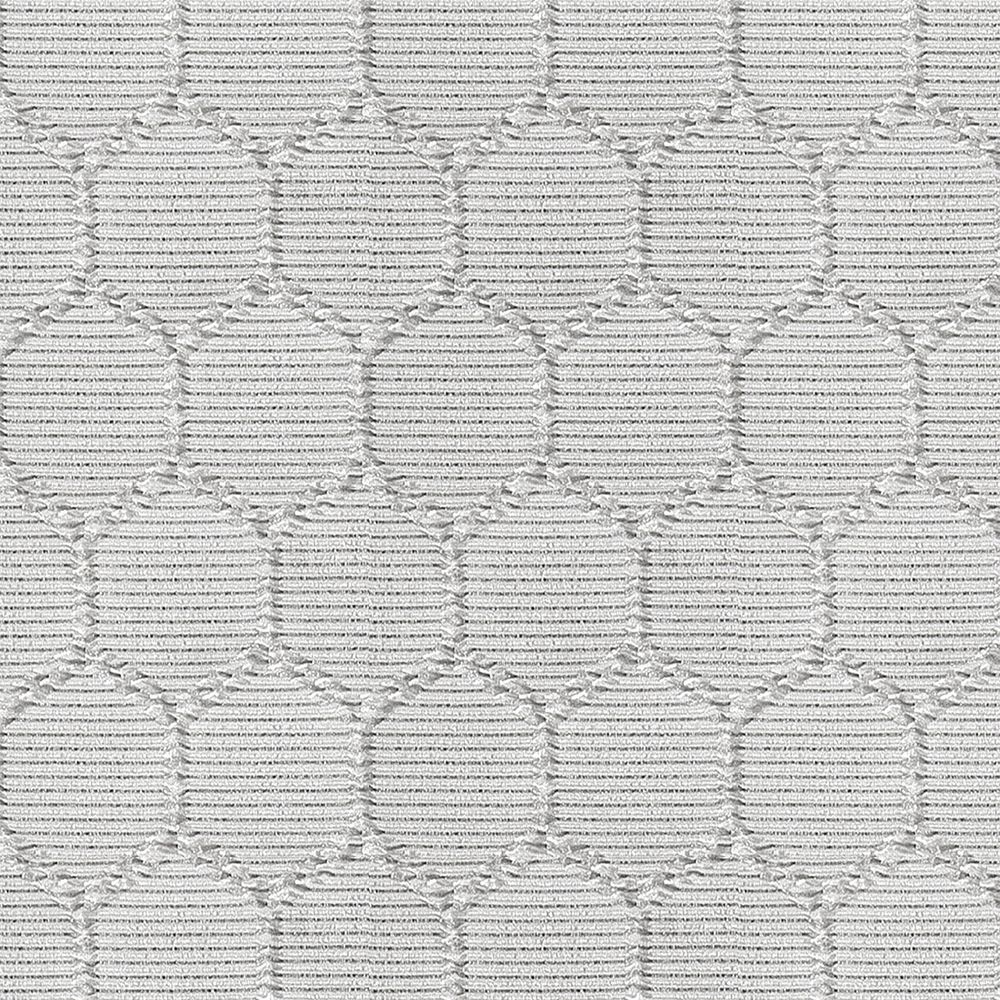 An ethereal, delicate, rasied texture geometric stitched pattern sheer in a silver colourway.