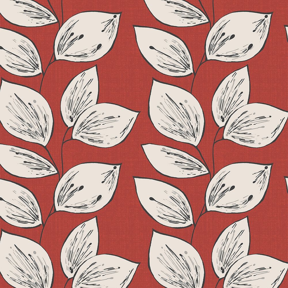 Simple graphic trailing leaf design in a deep red colourway.