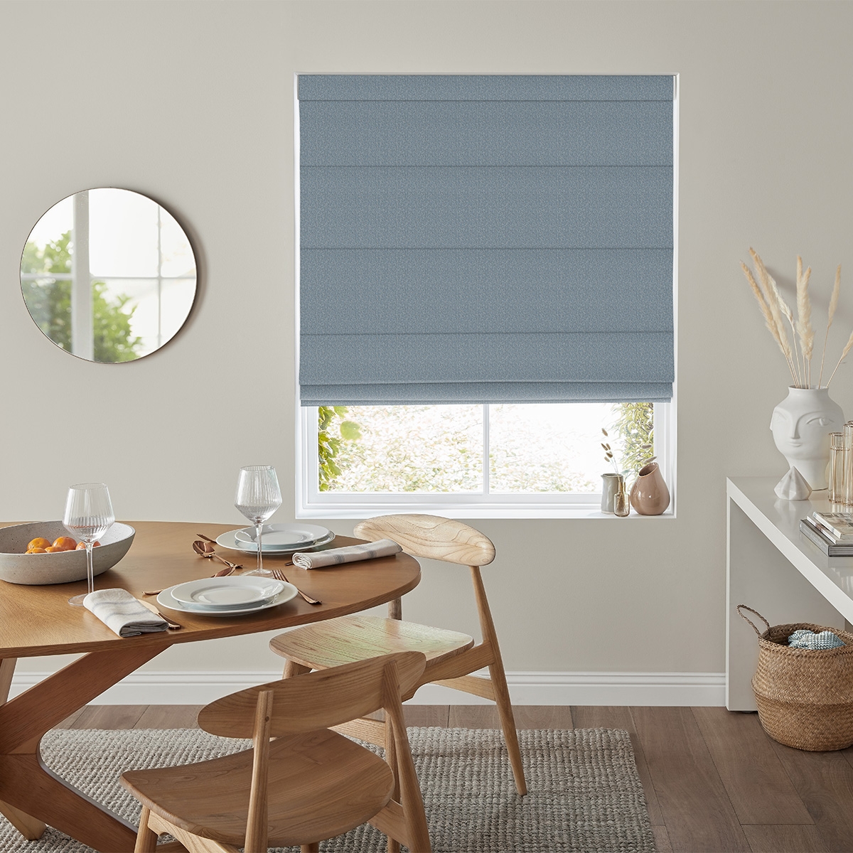 With its subtle patterning of broken and irregular vertical slubs, this easy to live with jacquard is great for roman blinds in any room.