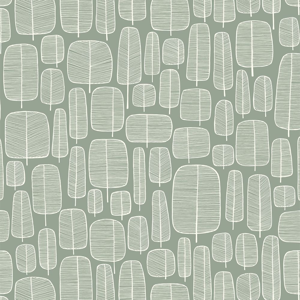 Item Code: ROLF-2464TTR This scandi-inspired screen-printed design features sketch-book style trees of white over a natural green-grey background to create a relaxed and down-to-earth minimalistic style.