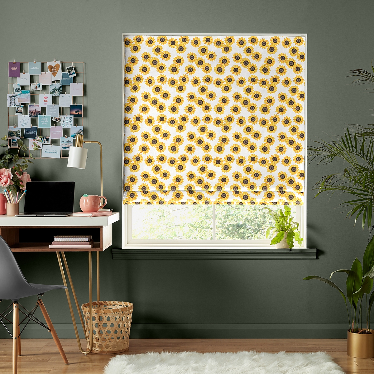 Nothing quite says summer like a vibrant sunflower! Shelter yourself from the summer rays with these fun made to measure roman blinds, complete with all you need to add a pop of fun to any room