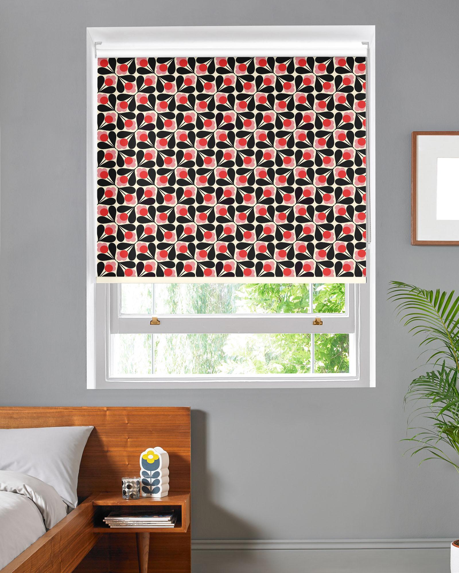 Item Code: ROLF-2416TTR With its geometric style that features a retro-inspired floral pattern of vibrant reds and pinks, this eye-catching design is ideal for creating an open and passionate space in any room. The Orla Kiely House designer collection puts a contemporary twist on classic retro styles by using eye-catching colour palettes with 60s and 70s patterns to create funky and playful roller blinds for adding a touch of retro-chic to your home decor. To help find the right material for your home, this design is available in a range of 3 finishes. Our blackout option is ideal for spaces where you want a powerful shade from light such as bedrooms or lounges, while the light filtering option is best suited for rooms where only a subtle diffusion of light is required. For bathrooms or kitchens, our wipe-clean PVC finish offers an excellent solution in any room where moisture is often present.
