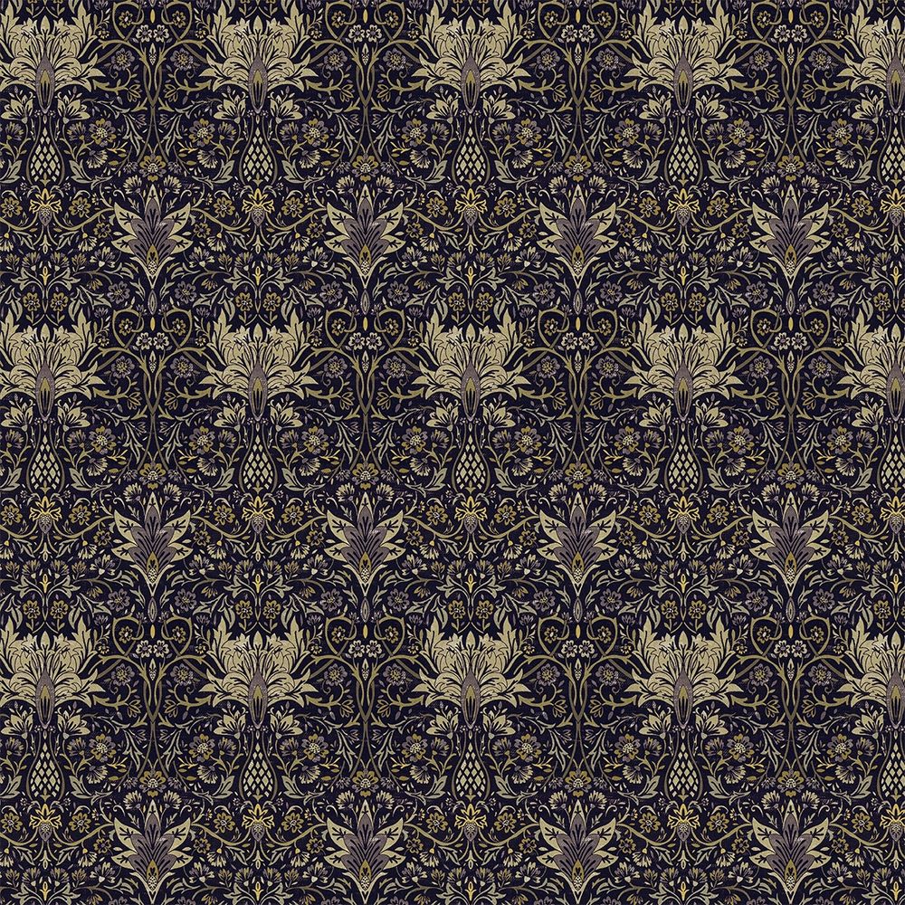 Featuring a repeating floral pattern with yellow hues over a purple background, this traditional design is ideal for creating a spacious and cooling feeling in any room.