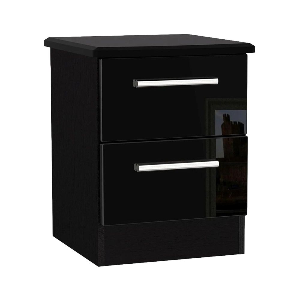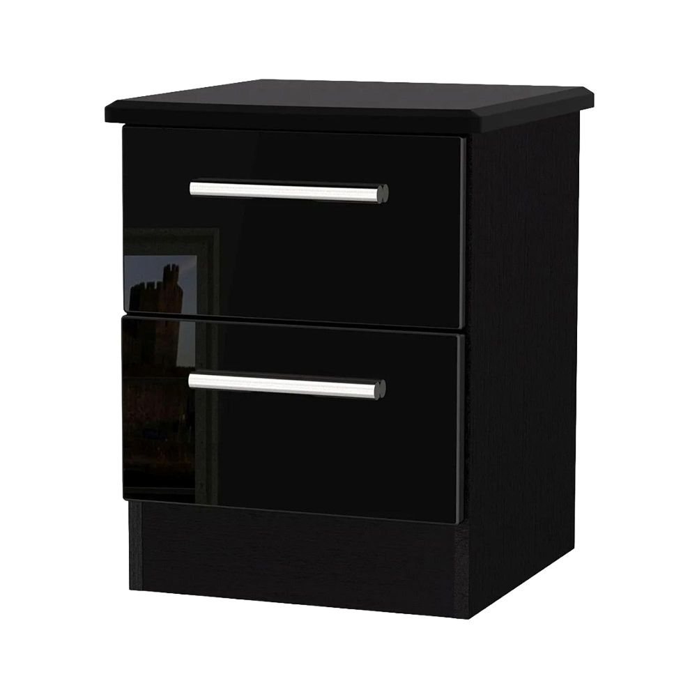 Knightsbridge Bedside Cabinet - 2 Drawer - Black Gloss