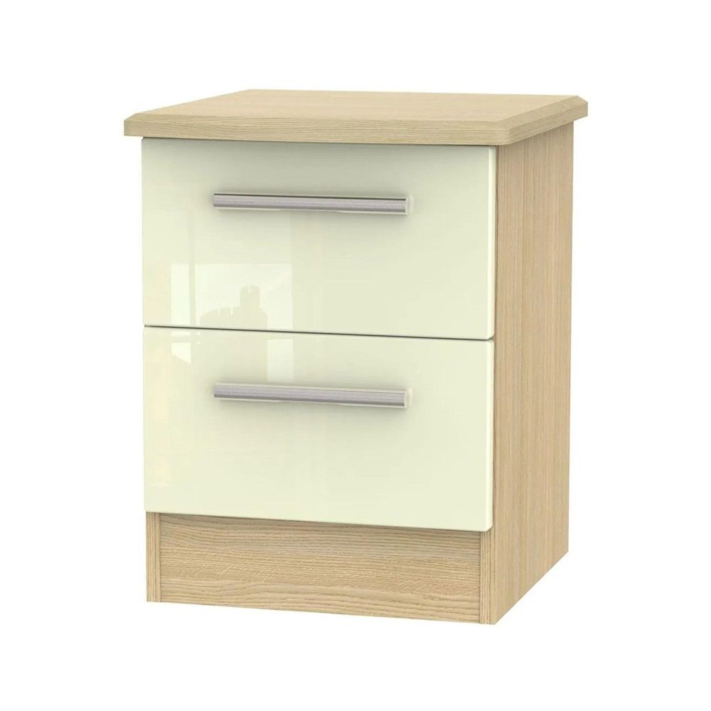 Knightsbridge Bedside Cabinet - 2 Drawer - Cream Gloss and Light Oak