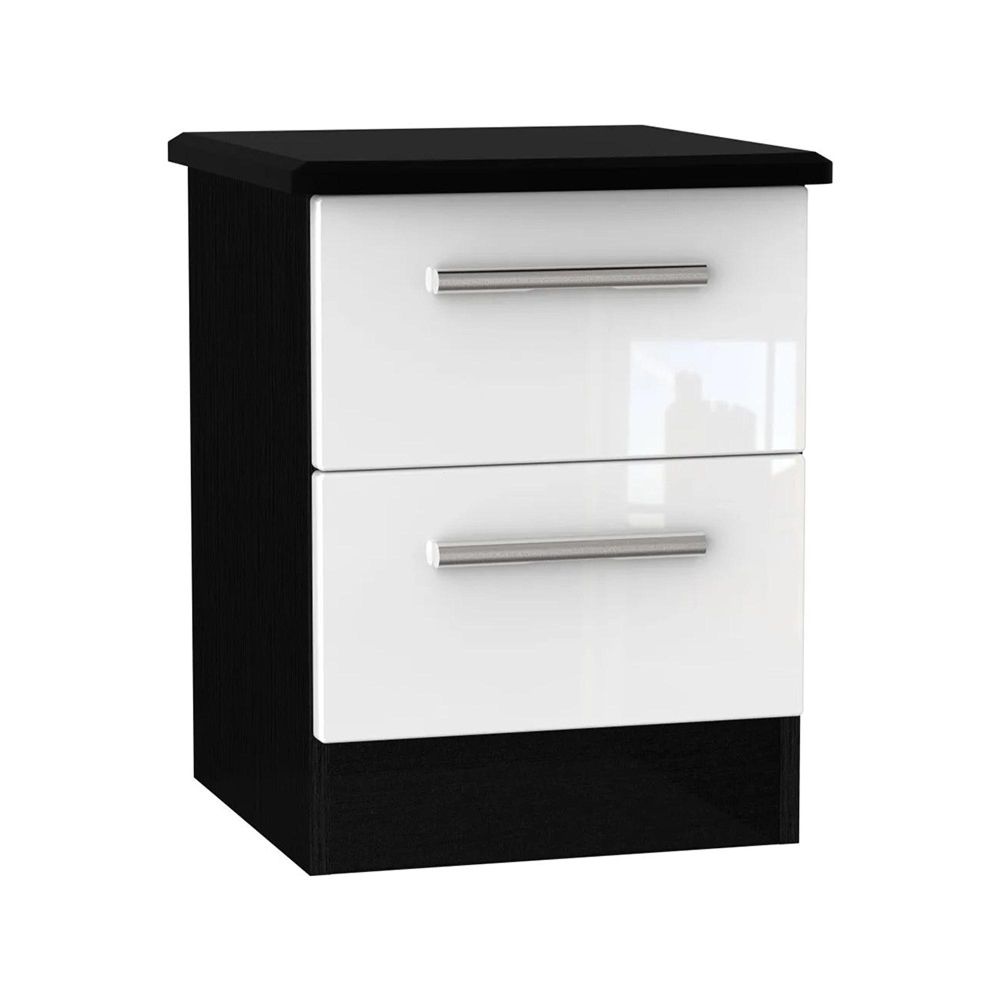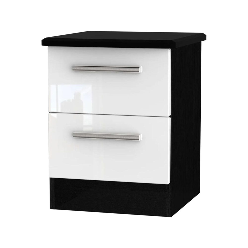Knightsbridge Bedside Cabinet - 2 Drawer - White Gloss and Black
