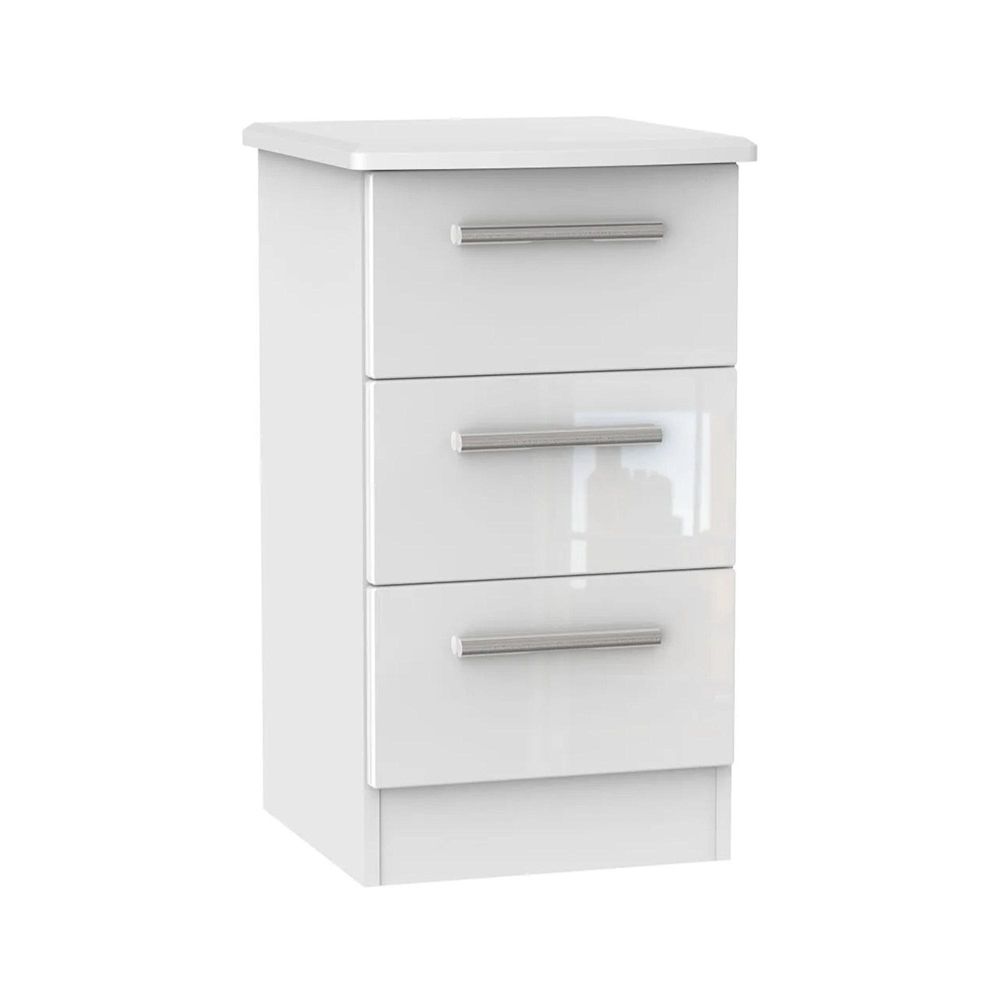 Knightsbridge Bedside Cabinet - 3 Drawer - White Gloss