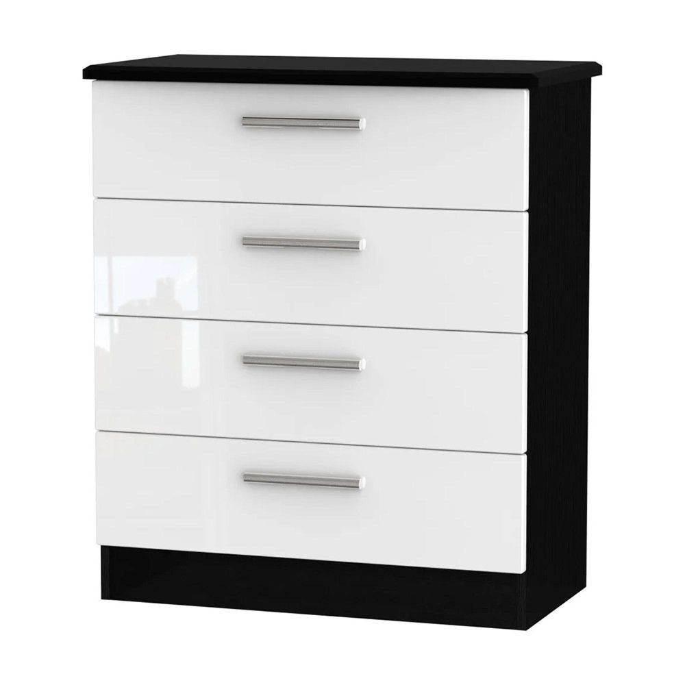 Knightsbridge Chest - 4 Drawer - White Gloss and Black