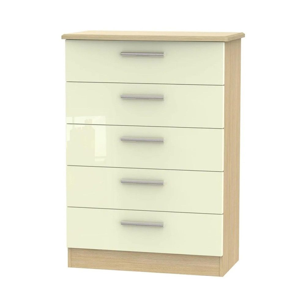 Knightsbridge Chest - 5 Drawer - Cream Gloss and Light Oak
