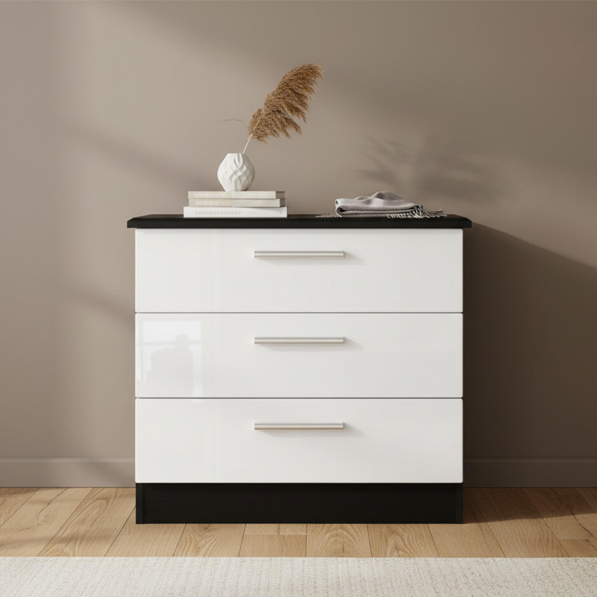 Knightsbridge Chest - Small - 3 Drawer - White Gloss and Black