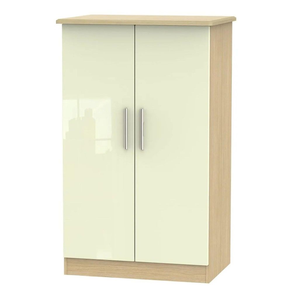 Knightsbridge Midi Wardrobe - Cream Gloss and Light Oak